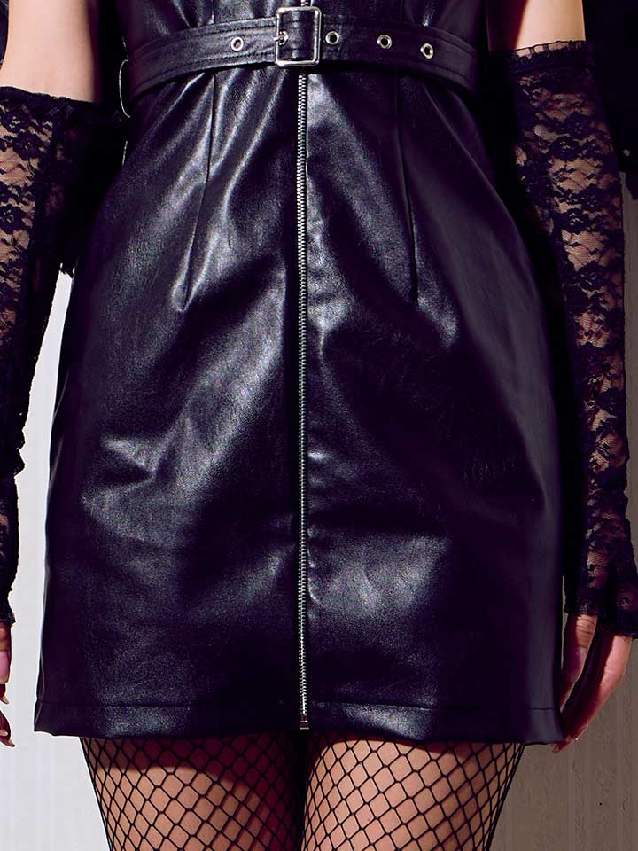 ブラック 黒 セットアップ スカート ミニスカート タイトスカート レザー 胸盛り