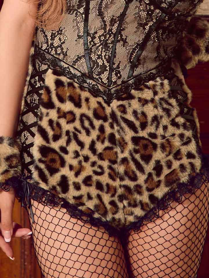 【ハロウィン】豹柄/レオパードファーボディスーツ【コスプレ6点セット】【XS-Mサイズ/1カラー】[OF03] [HW-227-YN-dzk-BR-25IG]