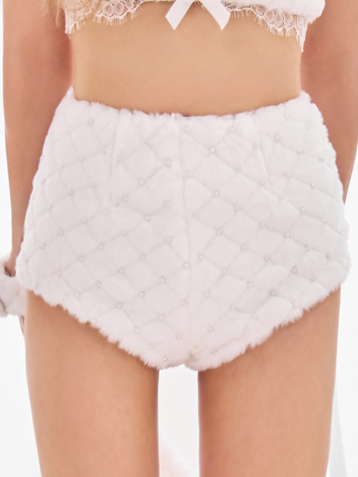 ホワイト 白 ランジェリー セットアップ 胸盛り ふわふわ パール