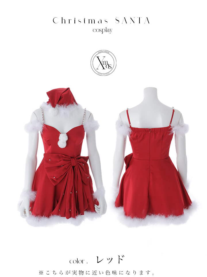 【ノベルティ対象】【予約 / 11月上旬発送予定】【送料無料!】【サンタ】サイドリボンビジューオフショルサンタコスプレ【コスプレ4点セット】【XS-Lサイズ/1カラー】[OF03] [SS-169-YN-dzw-R-25MY]