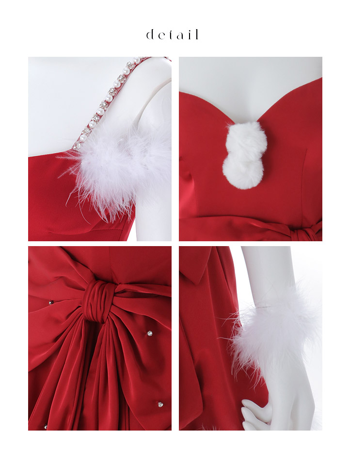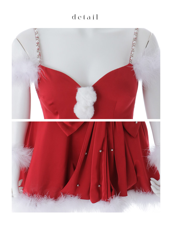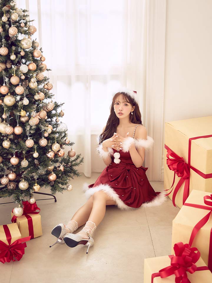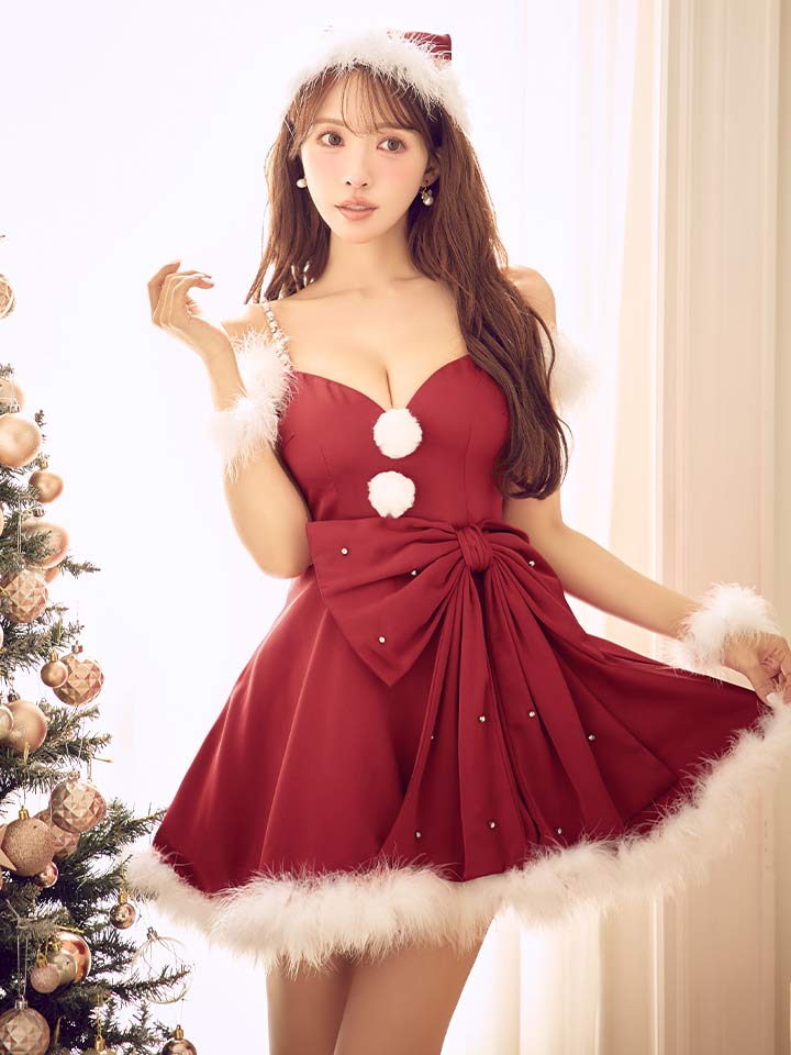 ビッグリボンが目を引くオフショルサンタコスプレ。