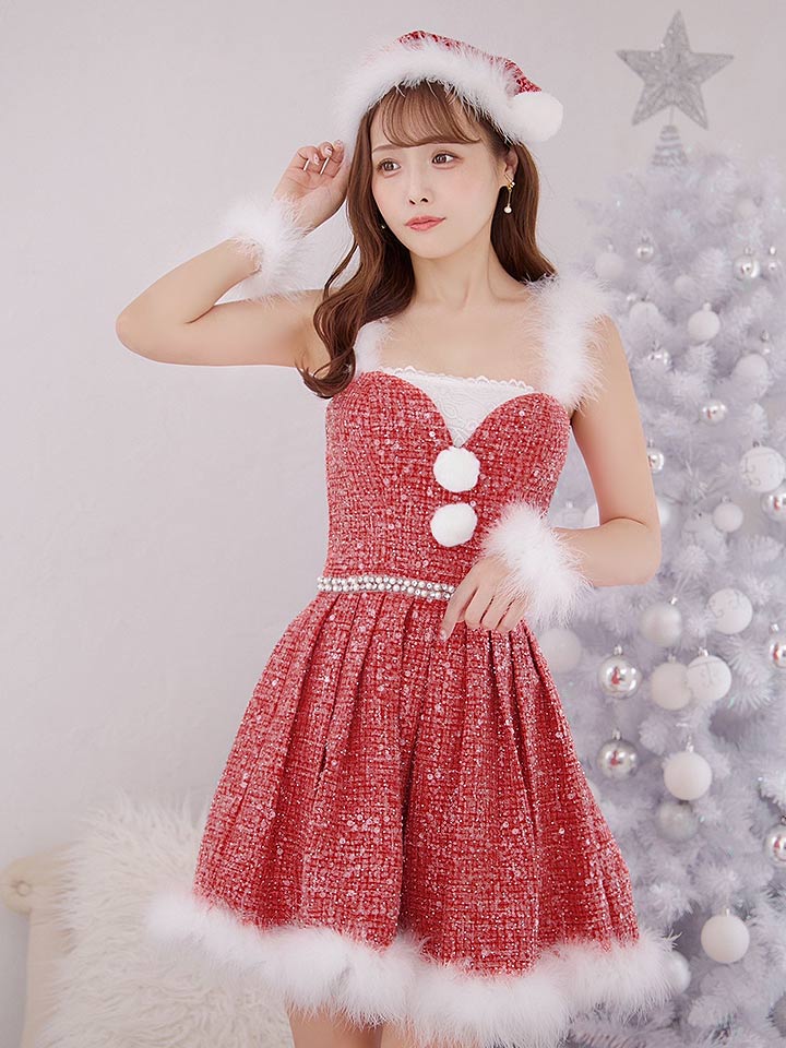 雪のように美しく煌めくラメツイードサンタコスプレ♥