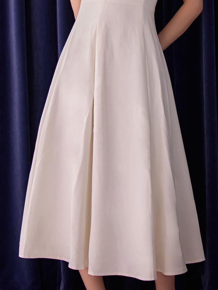 裾にかけてふんわり広がるシルエットが美しいロングワンピース。