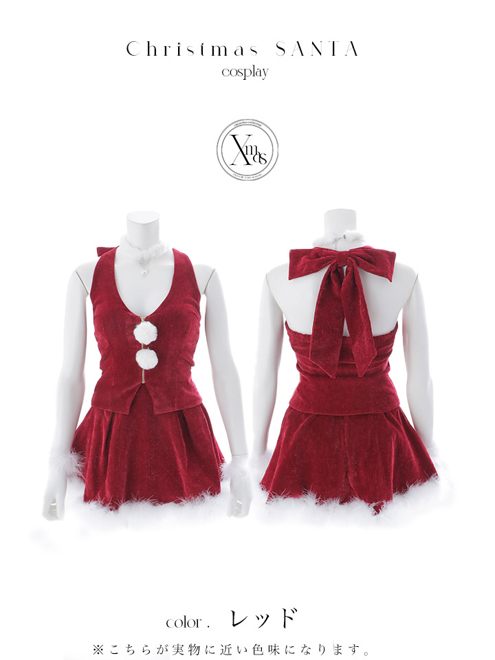 【予約 / 11月中旬発送予定】【送料無料!】【サンタ】ホルターネックジップセットアップサンタコスプレ【コスプレ6点セット】【XS-XLサイズ/2カラー】[OF03] [SS-188-YN-dzw-25MY]