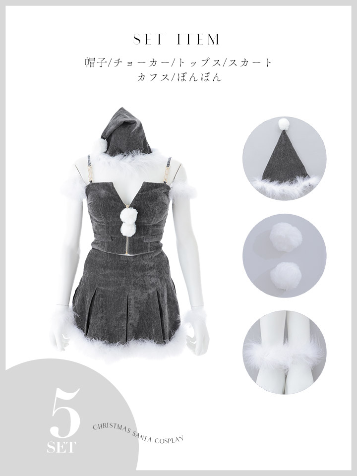 【ノベルティ対象】【即日発送】【サンタ】ファーショルダーシースルーフレアサンタコスプレ【コスプレ5点セット】【XS-XLサイズ/2カラー】[OF04] [SS-186-YN-dzw-BR-25AS]