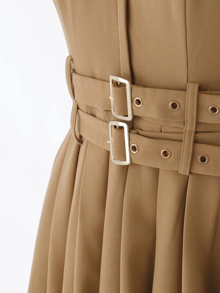 ダブルベルトがアクセントになり、クラシックでおしゃれな印象に。
