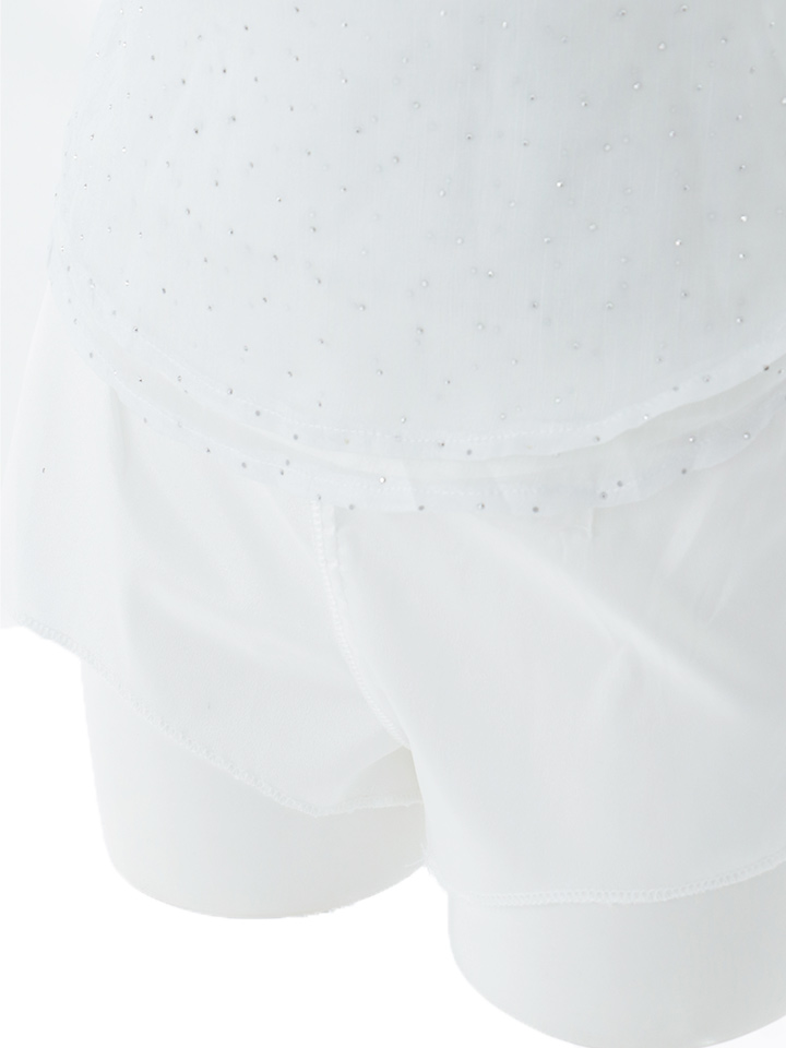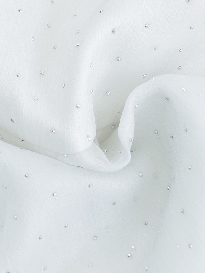 キラキラと輝くビジュー生地と軽やかなシフォンの組み合わせが、