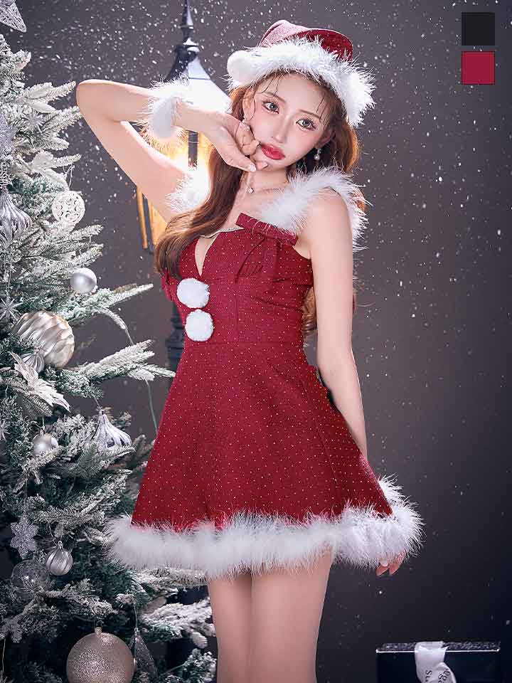 【ノベルティ対象】【即日発送】【サンタ】リボンファーサンタコスプレ【コスプレ4点セット】【XS-XLサイズ/2カラー】[OF01/OF04] [SS-162-YN-dzw-R-25AS]