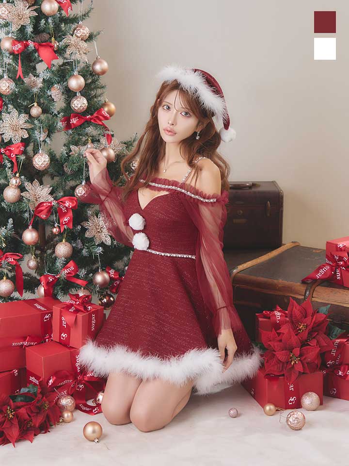 【即日発送】【サンタ】シフォン長袖ツイードフレアーサンタコスプレ【コスプレ3点セット】【S-XLサイズ/2カラー】[OF04] [SS-159-YN-dzw-R-25RI]