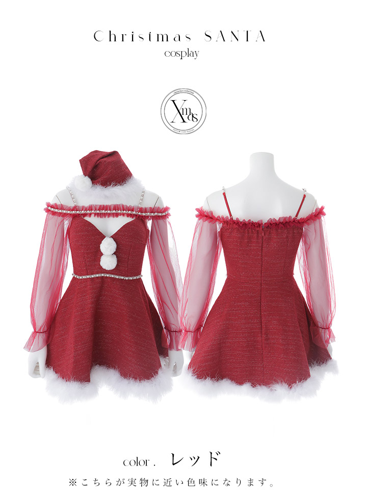【即日発送】【サンタ】シフォン長袖ツイードフレアーサンタコスプレ【コスプレ3点セット】【S-XLサイズ/2カラー】[OF04] [SS-159-YN-dzw-W-25NJ]