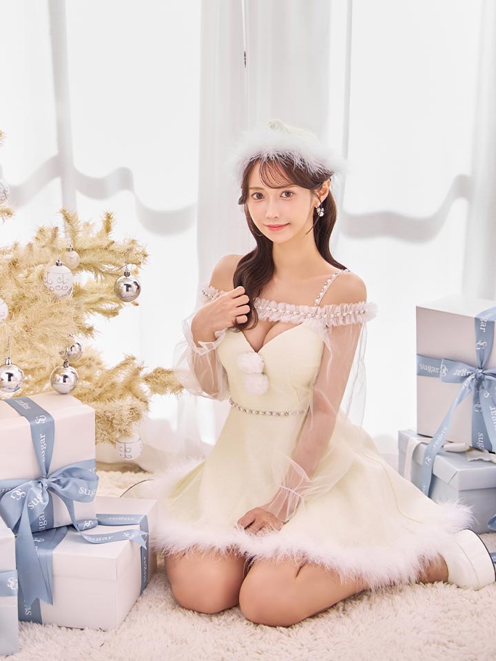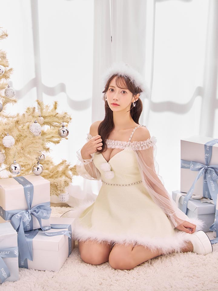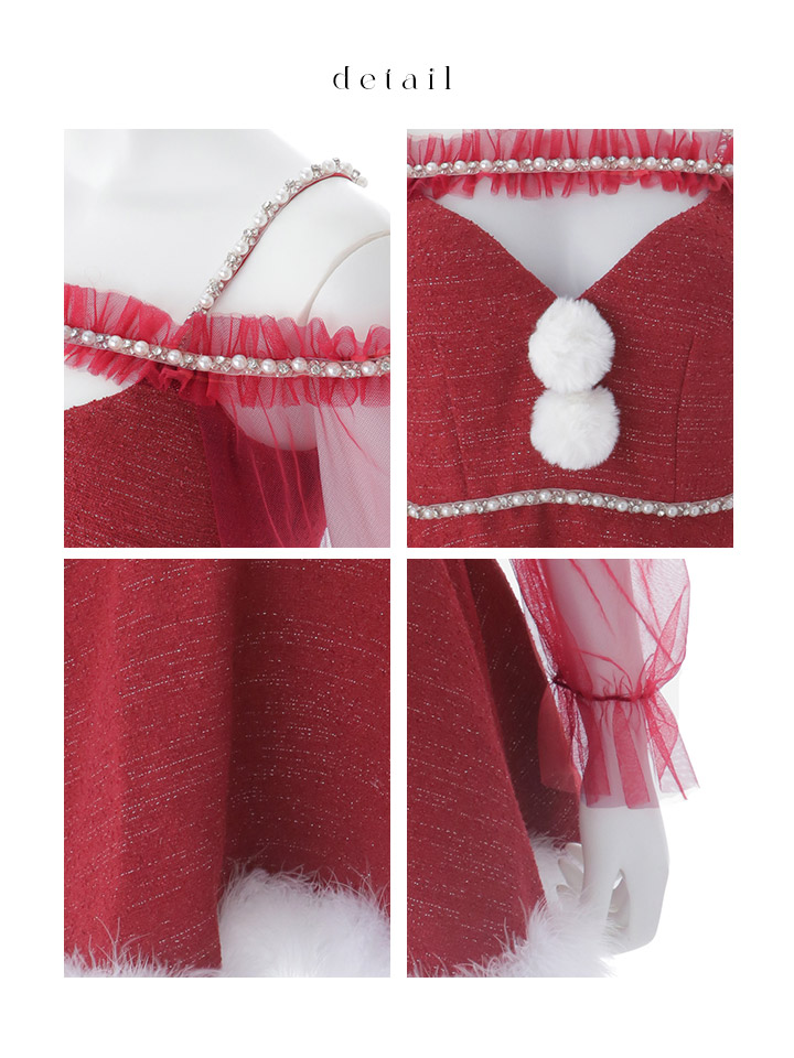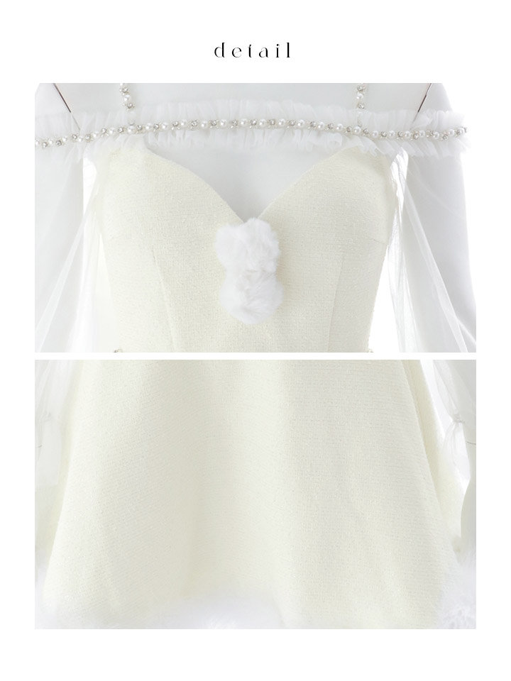 肩出し スカート フレアスカート ワンピース ファー ツイード