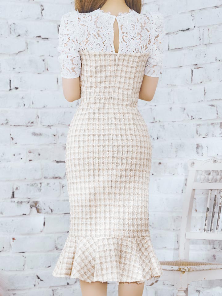 ガーリーなチェックツイードが目を惹くミディアムドレス。