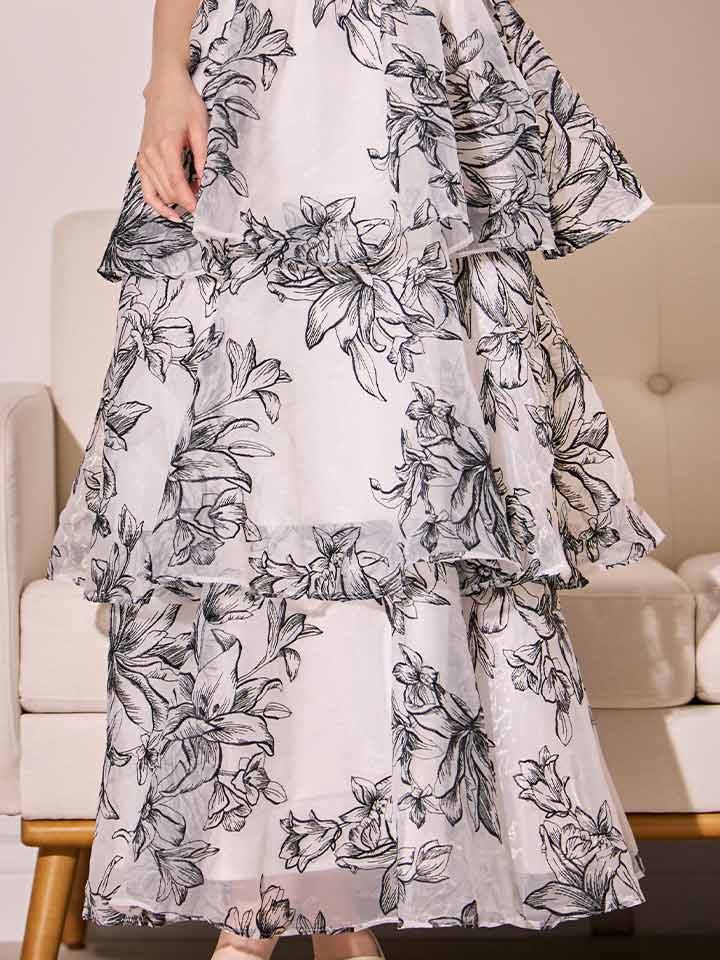 送料無料!【sifeel/シフィール】花柄ティアードフリルワンピースドレス/キャバドレス【S-Lサイズ/1カラー】【予約商品/11月下旬発送予定】[OF01] 【SB】dzwLD [3498SBdzwLD-251107-1]