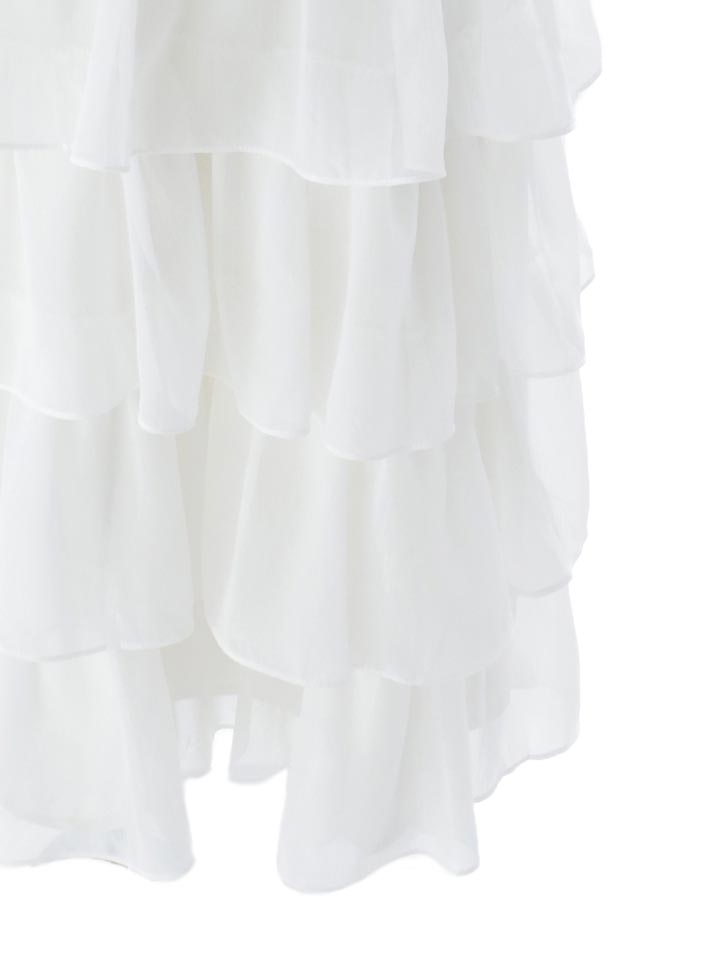 ティアードスカートがふんわりと広がる、大人かわいいワンピース。 アメリカンスリーブのデザインで華奢な肩まわりを演出し、上品な肌見せを叶えます。 甘さの中に抜け感があり、女性らしさを引き立てる一着です。