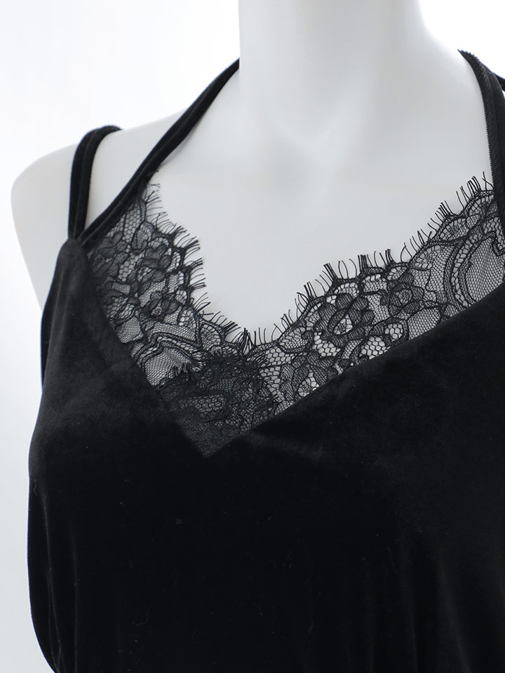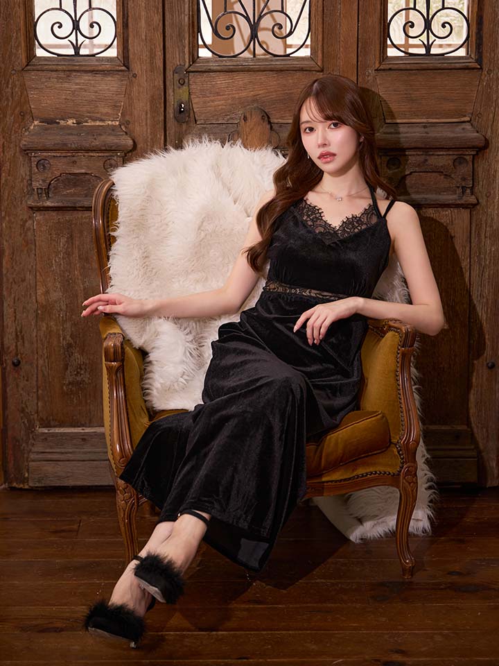 #ブラック #ネクスト銀座 ゆめ #ワンピースドレス #ベロア #刺繍レース #無地 #キャミ #谷間見せ(魅せ) #背中見せ(魅せ) #上品・華やか・お姉さん系 #JEWELSトレンド販売価格: 7,920円(税込)