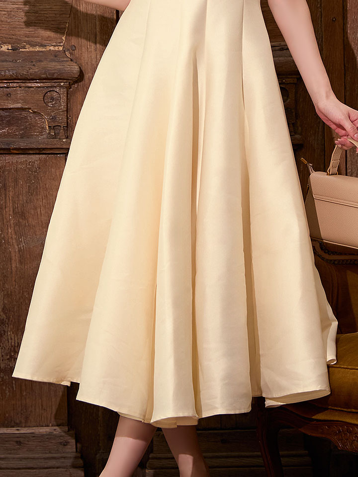 #アイボリー #ベージュ #ネクスト銀座 ゆめ #ミディアム丈ドレス #無地 #胸元隠し(胸隠し) #背中見せ(魅せ) #Aライン・フレアスカート #上品・華やか・お姉さん系 #JEWELSトレンド販売価格: 11,880円(税込)