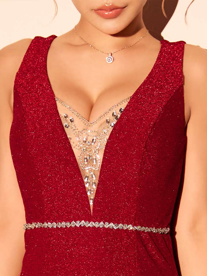 全体にちりばめられたビジューが煌めき、重厚感のある上品なロングドレス。