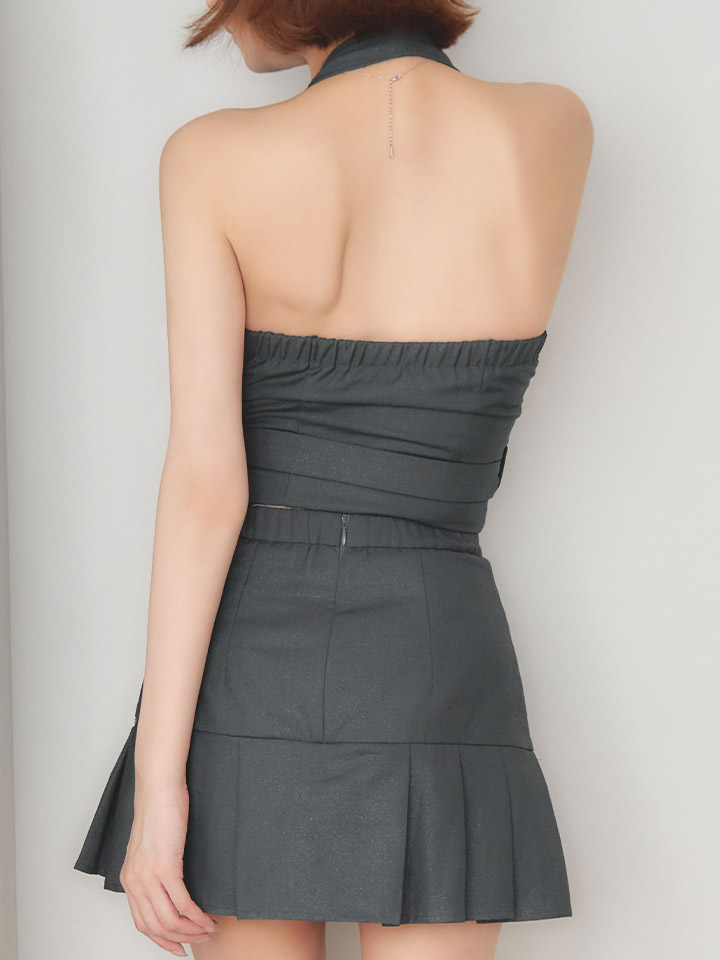 #グレー #ミニドレス/ミニ丈 #セットアップ(クロップド丈) #無地 #アメスリ #ノースリーブ #谷間見せ(魅せ) #背中見せ(魅せ) #Aライン・フレアスカート #セクシー系 #韓国っぽドレス #JEWELSトレンド販売価格: 11,880円(税込)