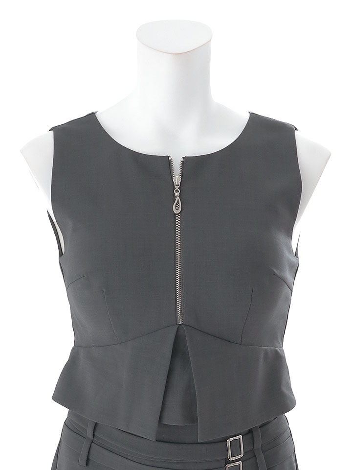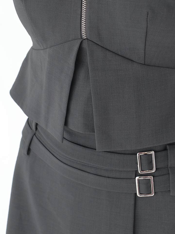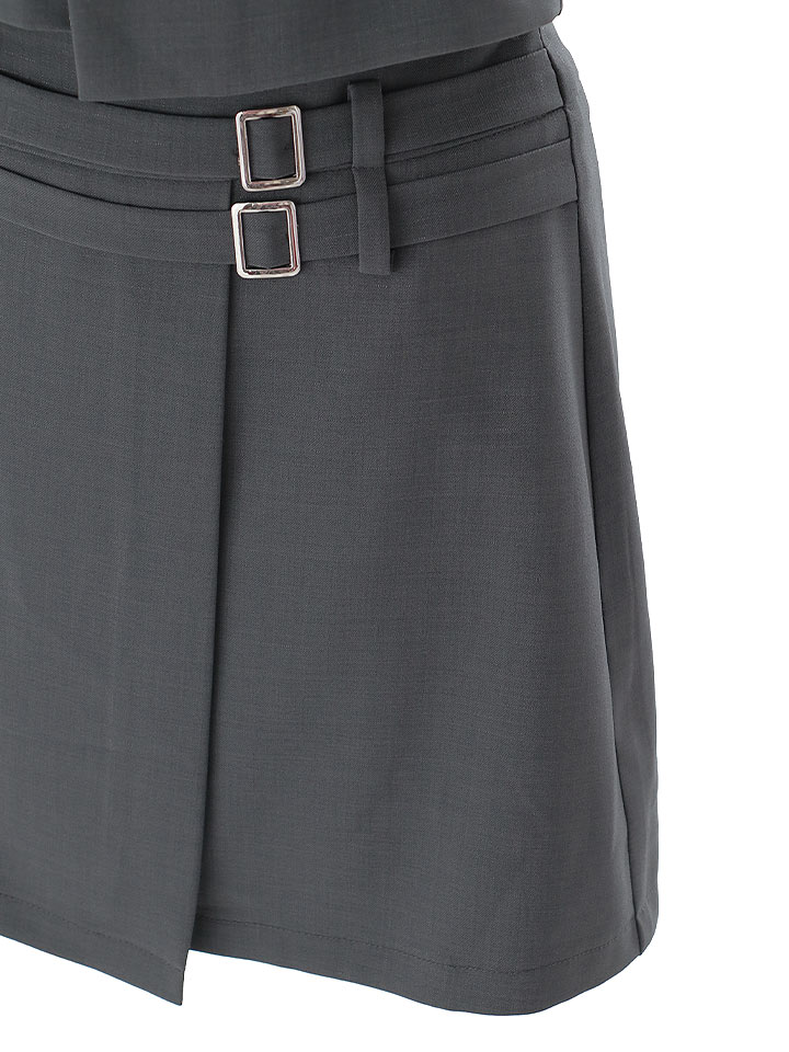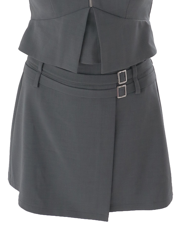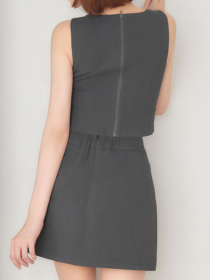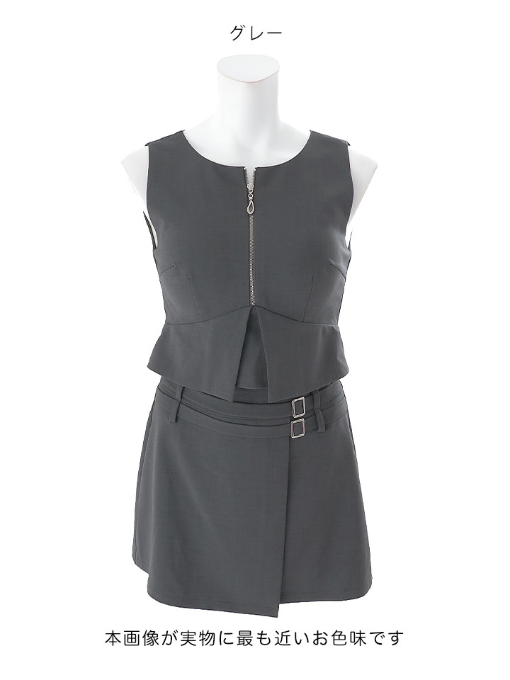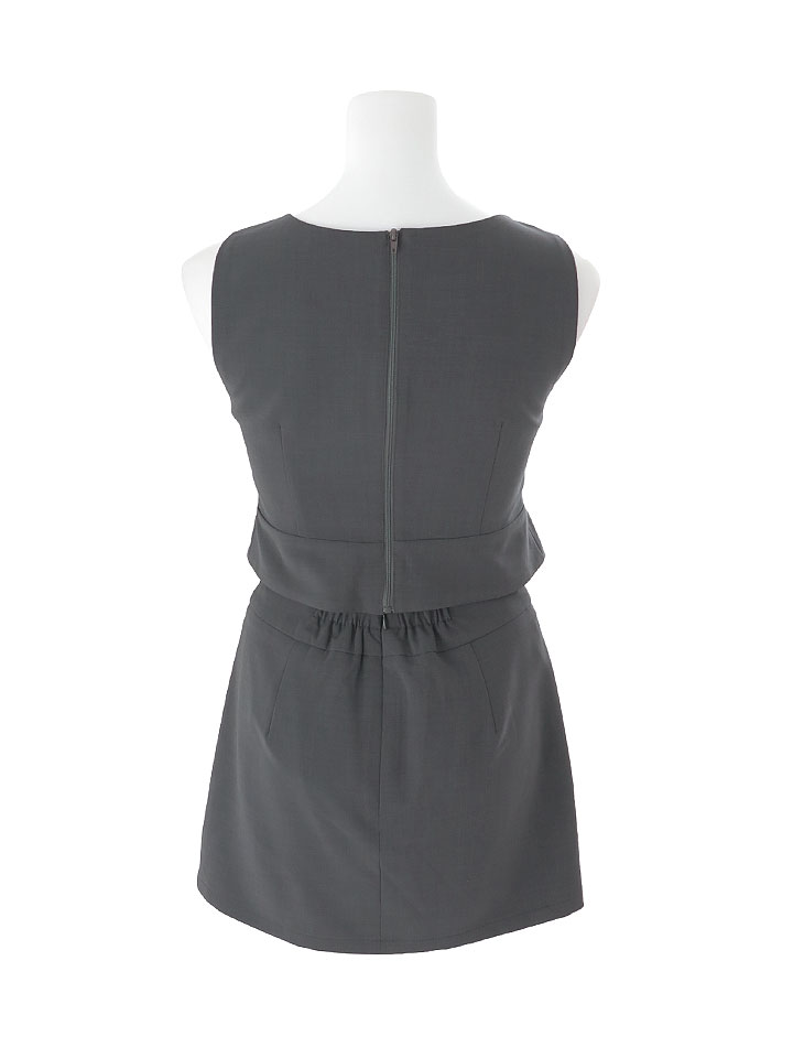 #グレー #ミニドレス/ミニ丈 #セットアップ(クロップド丈) #無地 #ノースリーブ #谷間見せ(魅せ) #胸元隠し(胸隠し) #背中隠し(ブラOK) #タイト #JEWELSトレンド #アシメスカート