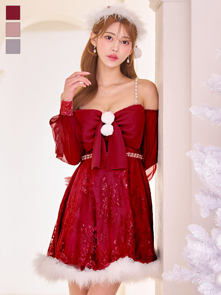 #フレア #シフォン #長袖 #ふんわり #刺繍 #リボン #りぼん #オフショル #クリスマス #パーティ #サンタコス