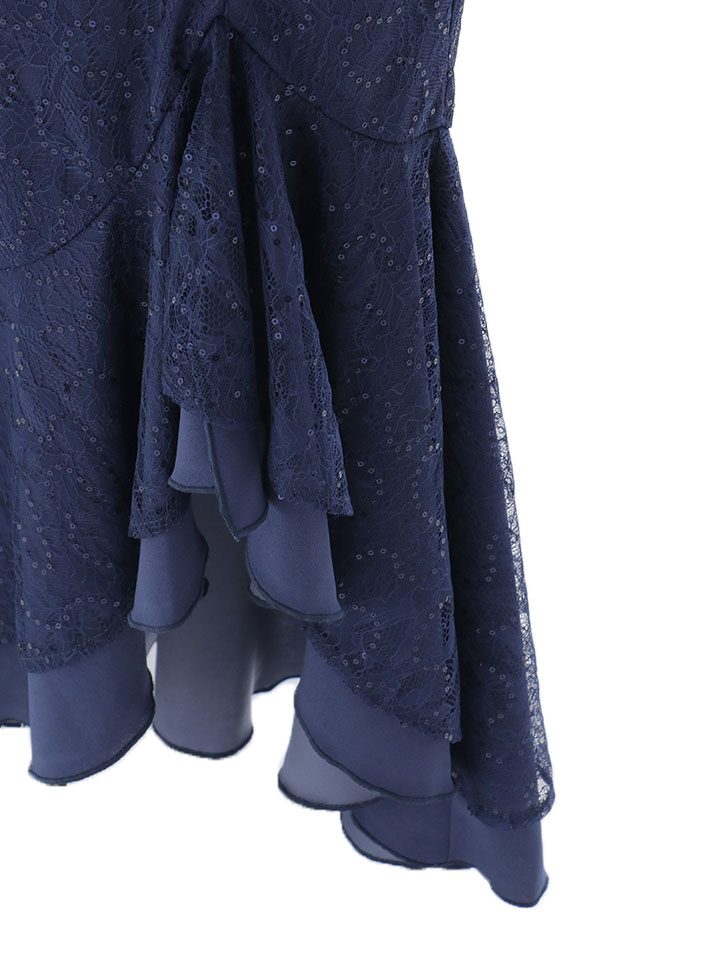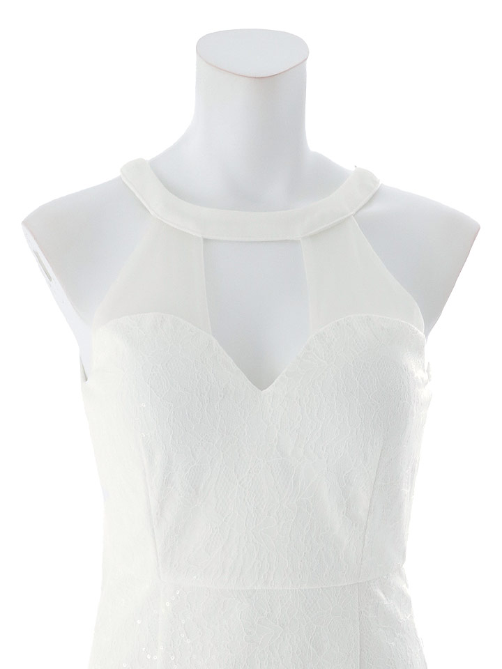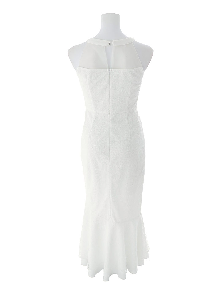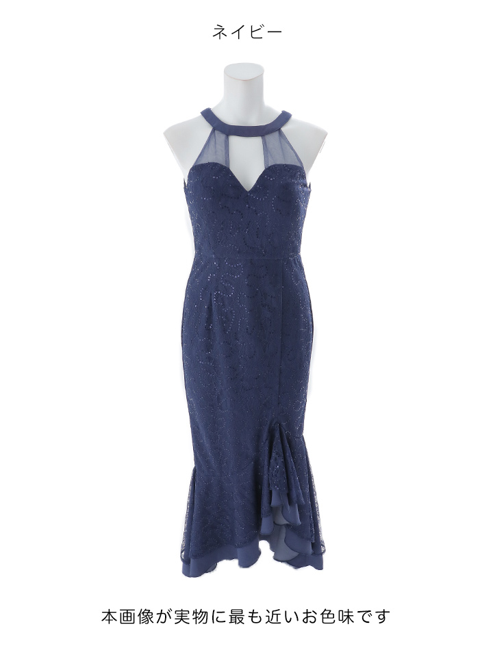 きらめくレースが全体を美しく飾り、視線を集める華やかさを纏える一着です。