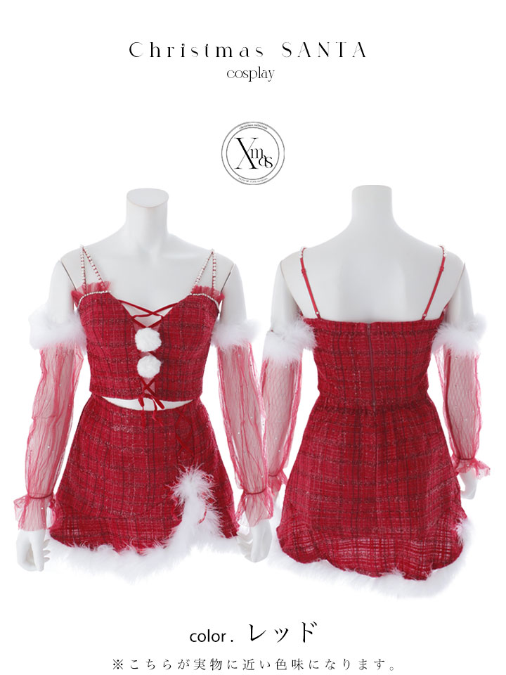 【即日発送】【サンタ】真優川咲ちゃんコラボバストクロスチェックツイードサンタコスプレ【コスプレ5点セット】【XS-Mサイズ/1カラー】[OF03] [SS-185-YN-MS-R-25MS-1]