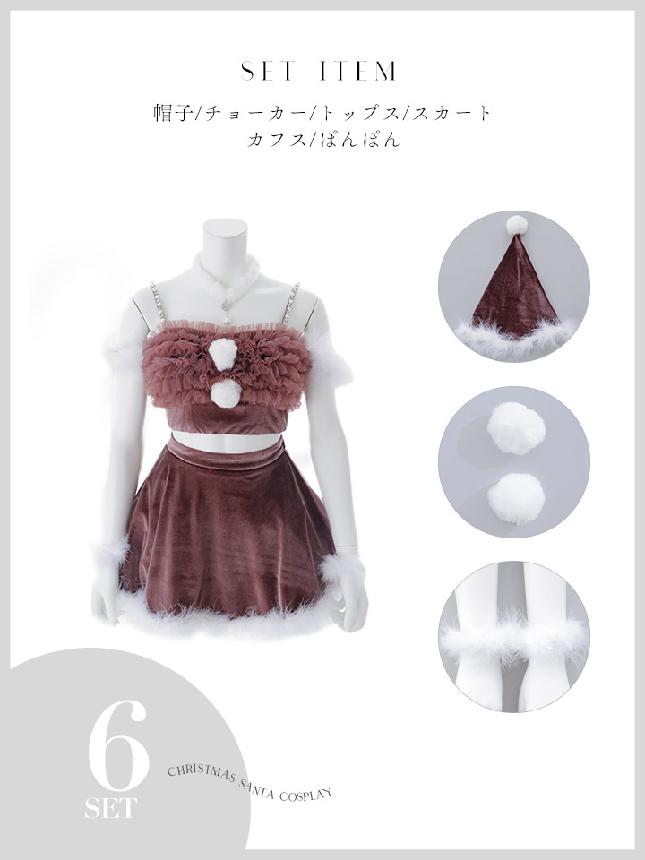【即日発送】【送料無料!】【サンタ】チュールフリルオフショルセットアップサンタコスプレ【コスプレ6点セット】【XS-Lサイズ/2カラー】[OF04/OF04] [SS-183-YN-dzw-BR-25RK]