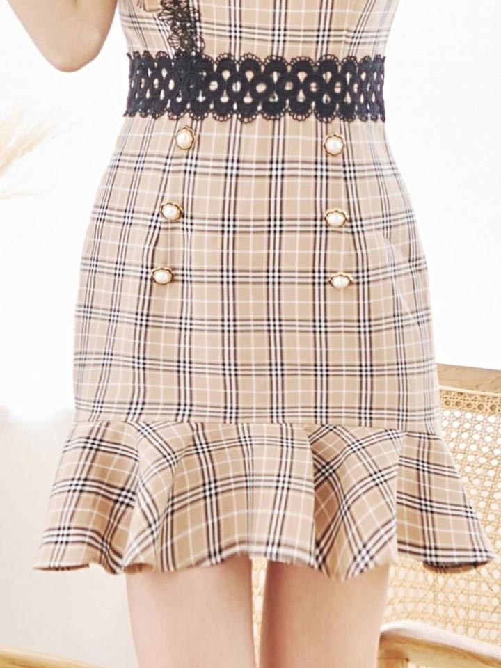 チェック柄×フリルデザインがCUTEなマーメイドミニドレス。