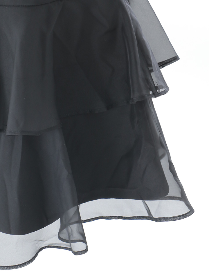 ティアードのフレアスカートがふんわりと広がり、可愛らしさの中に大人っぽさをプラス。