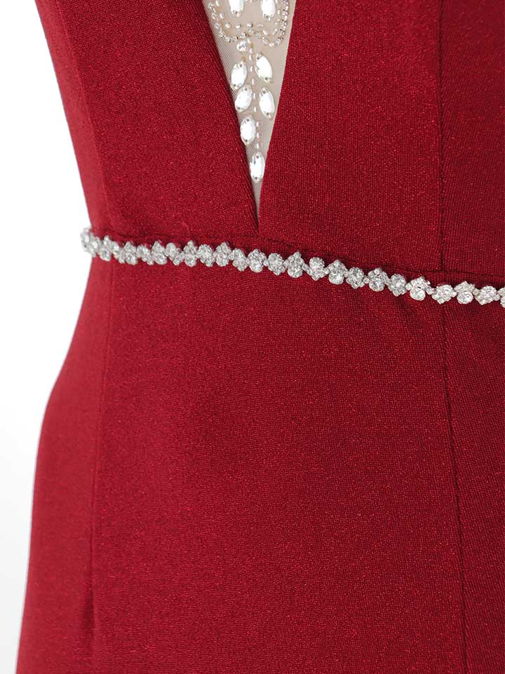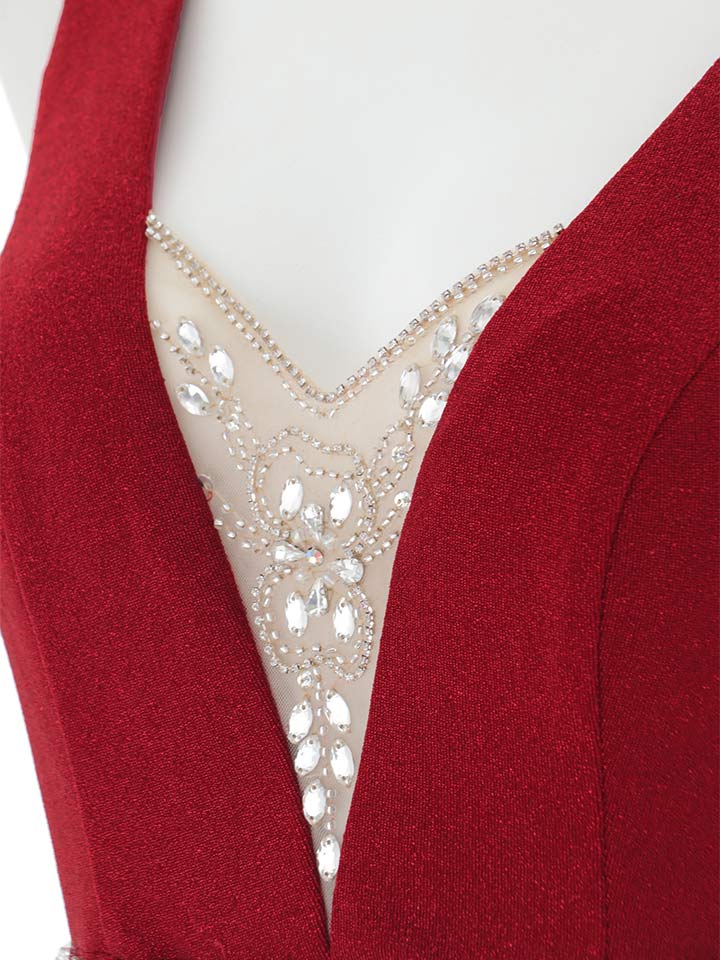 全体にちりばめられたビジューが煌めき、重厚感のある上品なロングドレス。