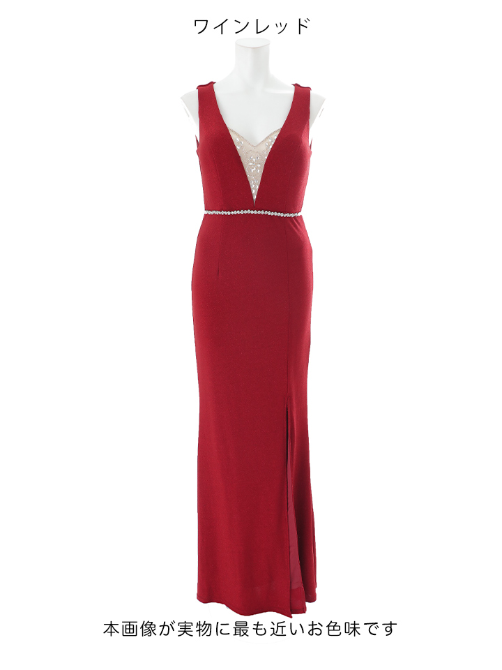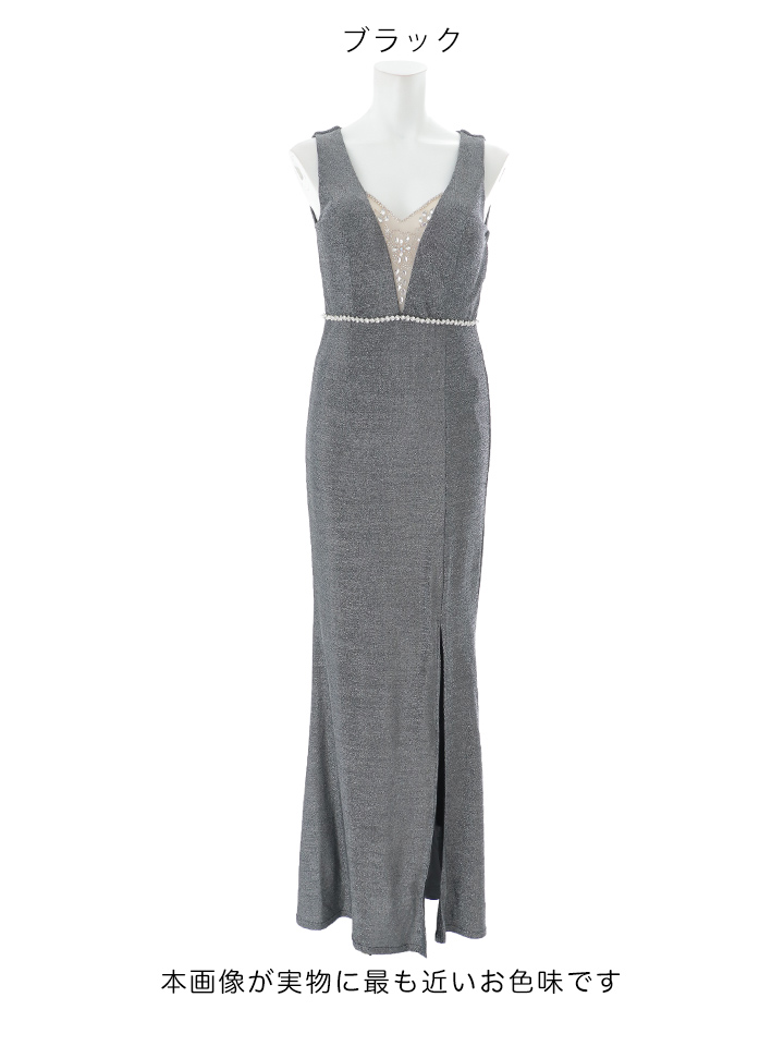 送料無料!フロントビジューラメロングドレス/キャバドレス【S-Lサイズ/2カラー】[OF03] 【IM】 [J-978IM-251114-2]