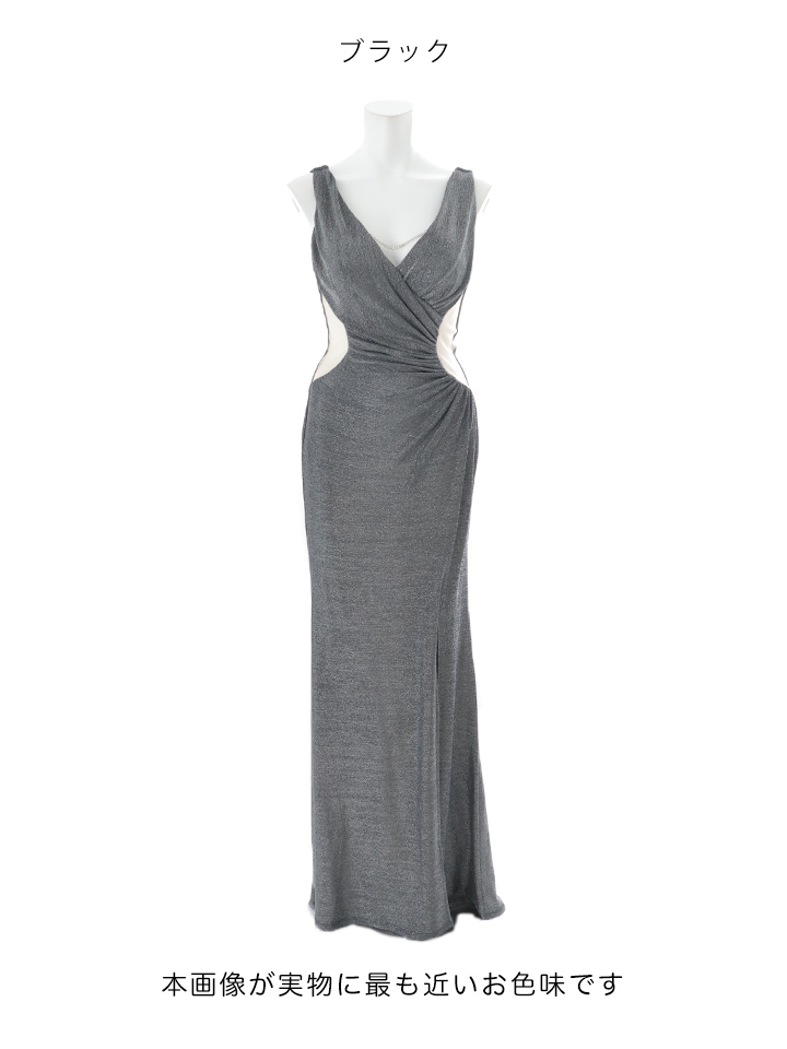 送料無料!ウエストカットノースリーブラメロングドレス/キャバドレス【S-Lサイズ/2カラー】[OF03B] 【IM】 [J-977IM-251114-2]