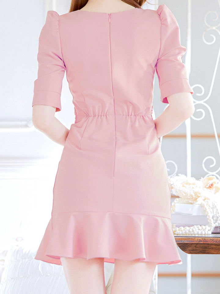 パフスリーブレースマーメイドミニドレス/キャバドレス【XS-Lサイズ/5カラー】[OF05] [J90045Y-251115-2]