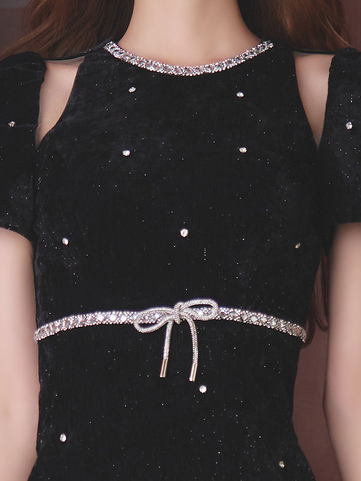 ショルダーシアーベロアミニドレス/キャバドレス【XS-Lサイズ/1カラー】[OF01]【SB】dzw [3500SBdzw-251203-1]