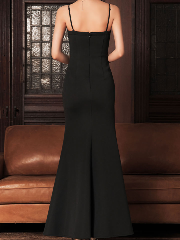 谷間見せデザインが視線を引き寄せるロングドレス。