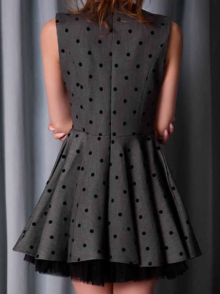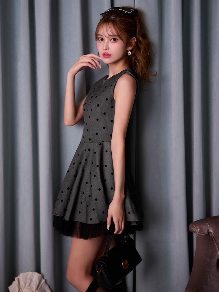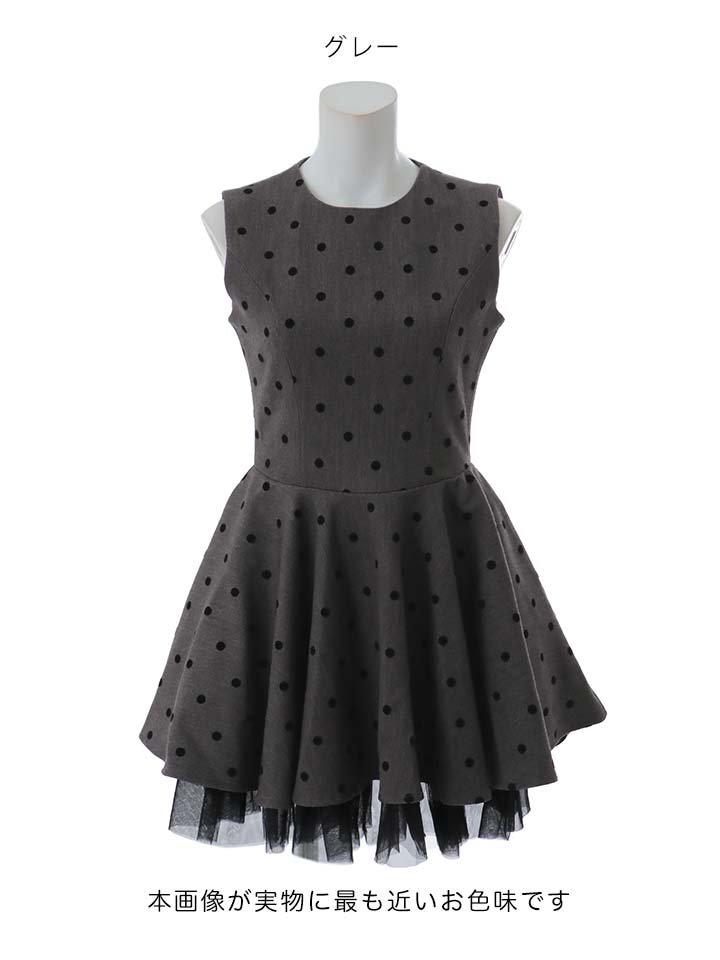 #グレー #るりぴ #ミニドレス/ミニ丈 #レース #チュール #ドット柄 #ノースリーブ #胸元隠し(胸隠し) #背中隠し(ブラOK) #Aライン・フレアスカート #スイート・可愛い(かわいい)系 #JEWELSトレンド