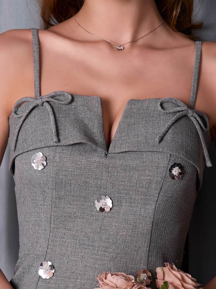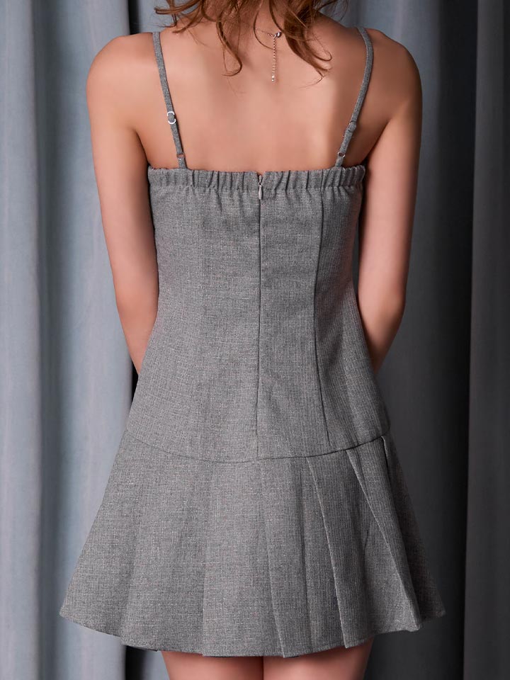 #グレー #るりぴ #ミニドレス/ミニ丈 #無地 スーツ生地 ビジュー #キャミ #ノースリーブ #谷間見せ(魅せ) #背中見せ(魅せ) #Aライン・フレアスカート #プリーツスカート #スイート・可愛い(かわいい)系 #JEWELSトレンド