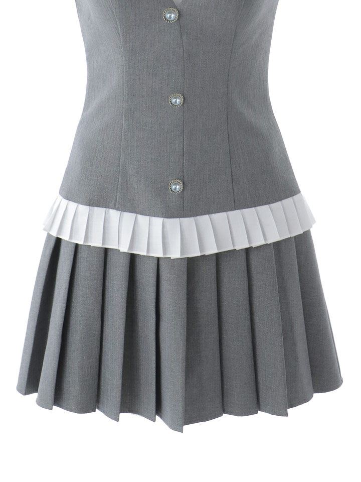 #グレー #ブラウン #るりぴ #れみれみ着用 #ミニドレス/ミニ丈 #キャミ #ノースリーブ #谷間見せ(魅せ) #背中見せ(魅せ) #Aライン・フレアスカート #スイート・可愛い(かわいい)系 #JEWELSトレンド