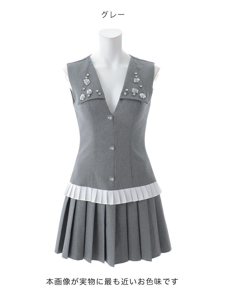 送料無料!襟付きスパンコールプリーツミニワンピースドレス/キャバドレス【XS-Mサイズ/2カラー】【予約商品/12月中旬発送予定】[OF01]【SB】dzwvAG [3508SBdzwvAG-251208-1]