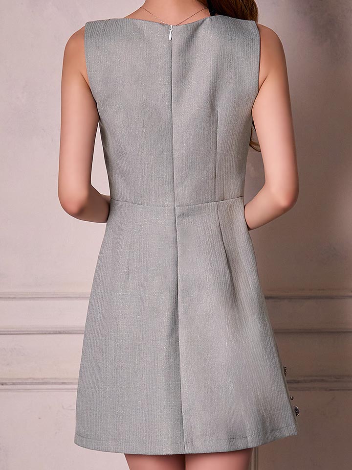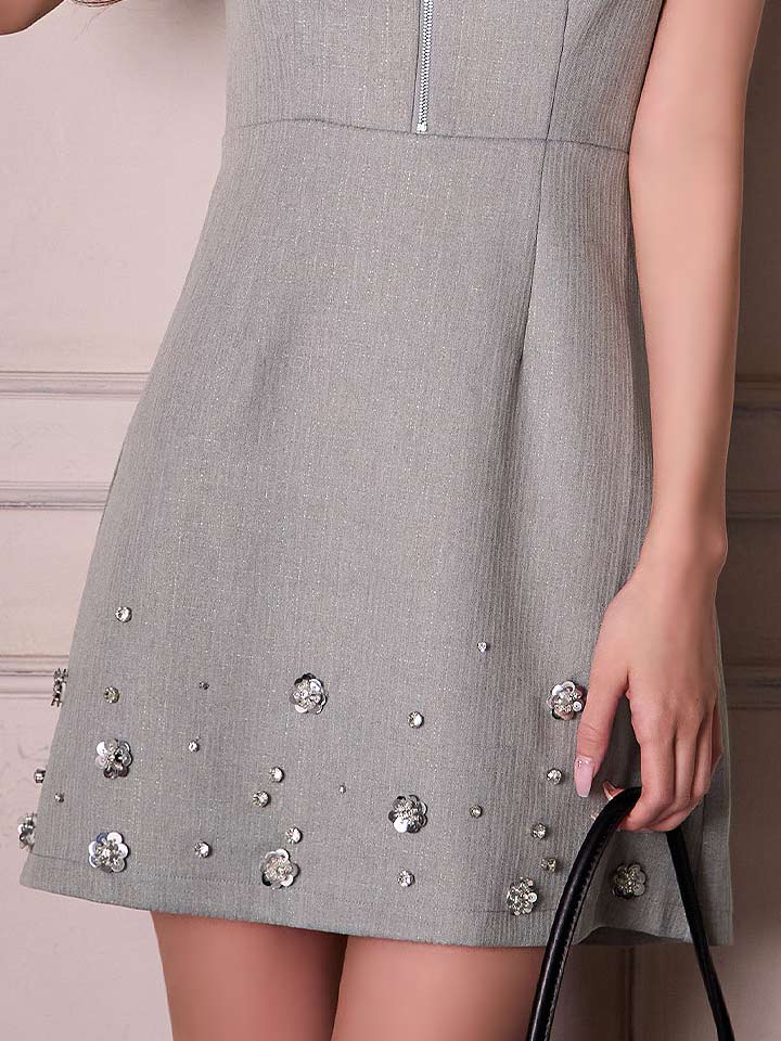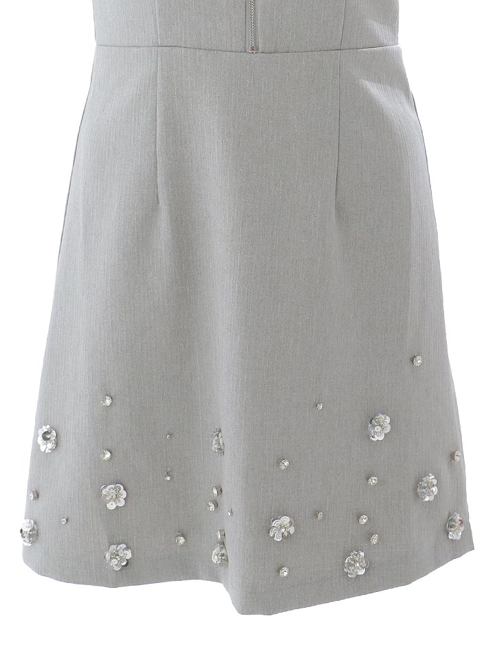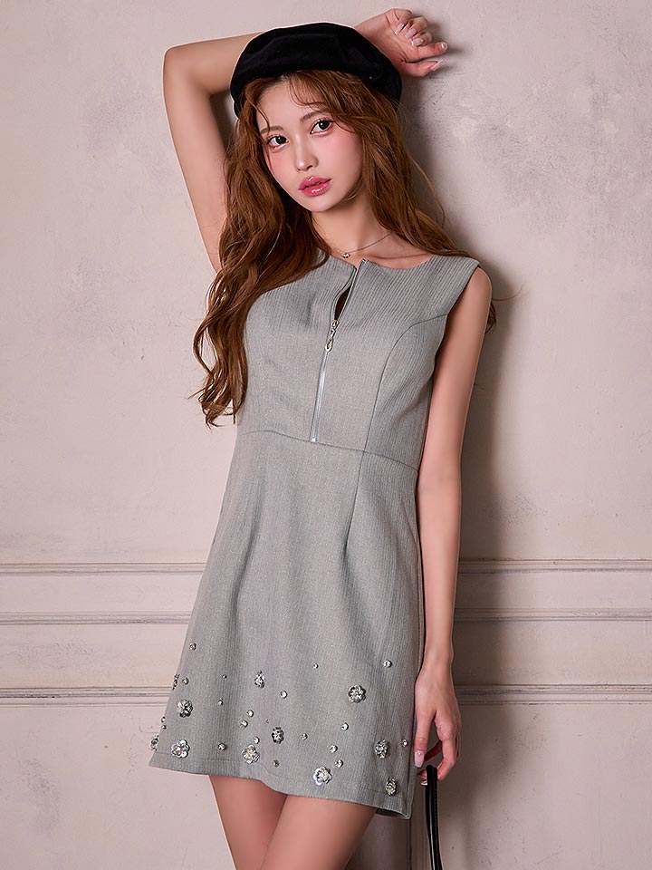 #グレー #るりぴ #ミニドレス/ミニ丈 スーツ生地 ビジュー #ノースリーブ #谷間見せ(魅せ) #背中隠し(ブラOK) #Aライン・フレアスカート #スイート・可愛い(かわいい)系 #JEWELSトレンドレビュー