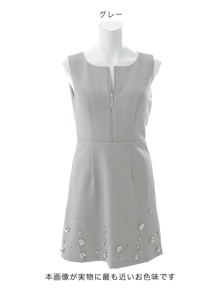 送料無料!フラワービジューフロントジップミニドレス/キャバドレス【XS-Lサイズ/1カラー】【予約商品/12月中旬発送予定】[OF01]【SB】dzwIA [3487SBdzwIA-251208-1]