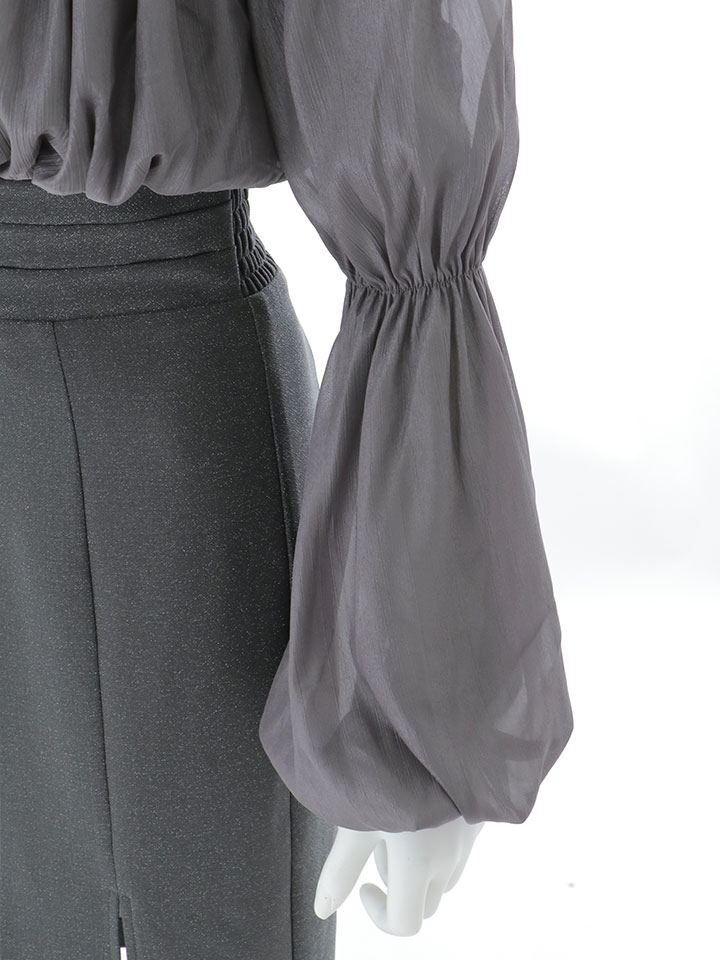 ウエストのシャーリングが自然にくびれを強調し、スタイルアップが叶う一枚です。