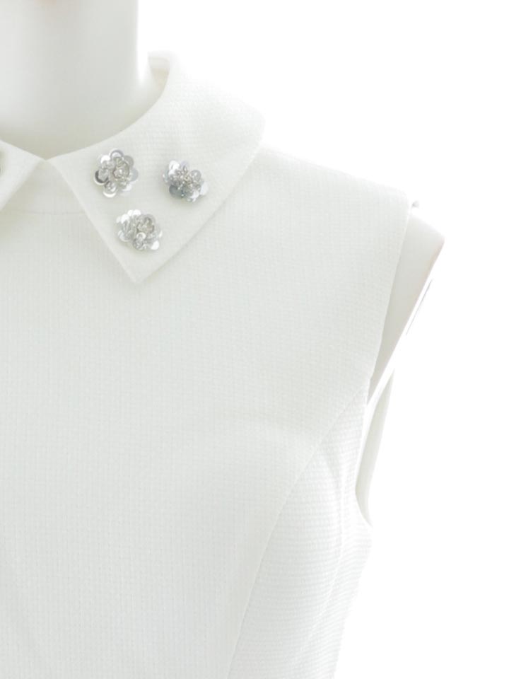 #ホワイト #ネクスト銀座 ゆめ #ミニドレス/ミニ丈 #ツイード ビジュー #襟付き #ノースリーブ #胸元隠し(胸隠し) #背中隠し(ブラOK) #Aライン・フレアスカートレビュー