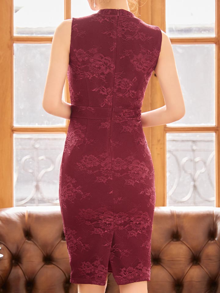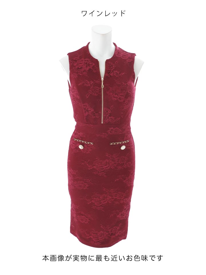 新色登場!ジップアップレースノースリーブミディアムドレス/キャバドレス【XS-Lサイズ/3カラー】[OF03B]【IM】 [J-903IM-251121-1]