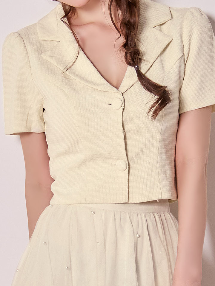 ジャケット×シフォンスカートの大人のスウィートセットアップ