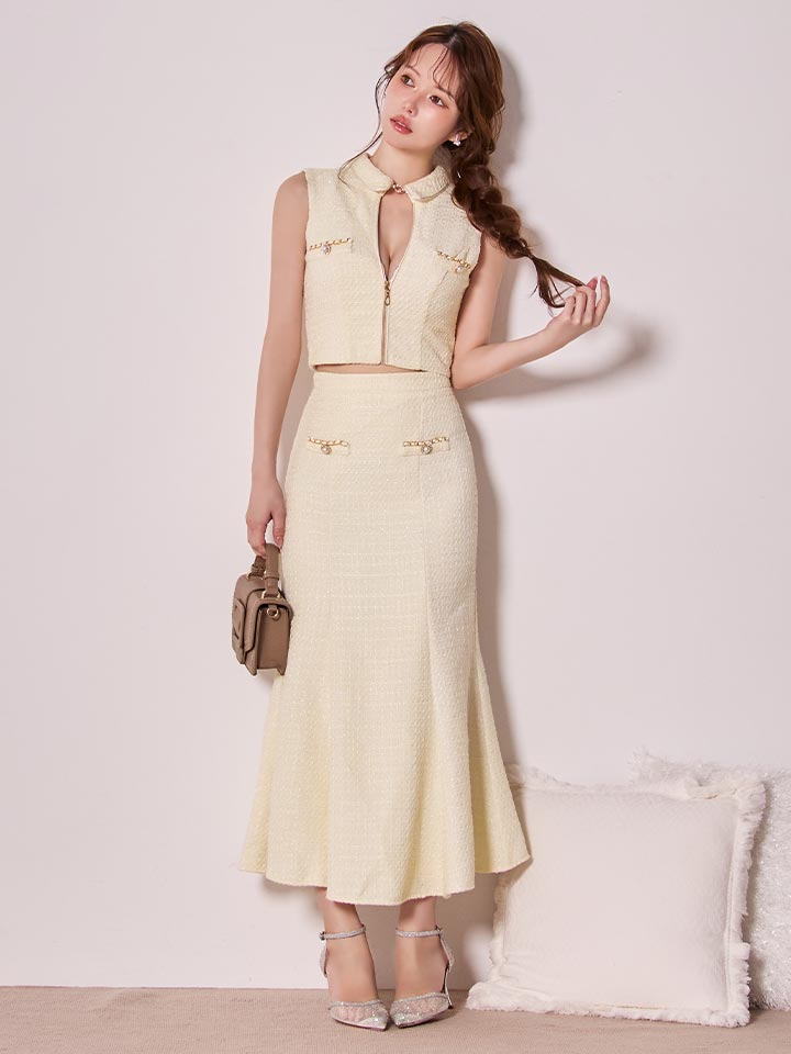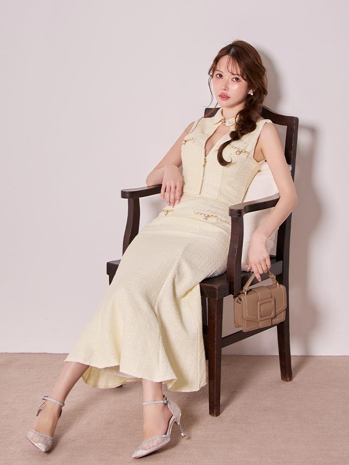 【sifeel/シフィール】襟付きノースリーブツイードセットアップドレス/キャバドレス【S-Lサイズ/1カラー】[OF01A] 【SB】dzw [3230SBdzw-251122-1]