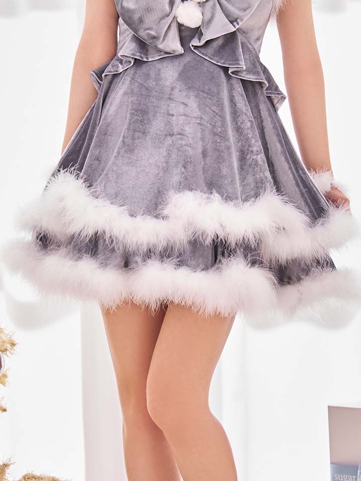 ビジューにファーに、クリスマス要素を存分に詰め込んだ1着。