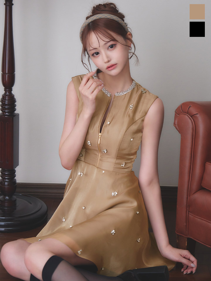 送料無料!フロントジップシフォンミニドレス/キャバドレス【予約商品/12月上旬発送予定】[OF01] [3499SBdzqvIA-251126-1]