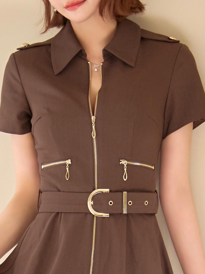 フロントジップワンピースミニドレス/キャバドレス【XS-Mサイズ/2カラー】[OF03] 【YN】dzw [5244YNdzw-251126-1]