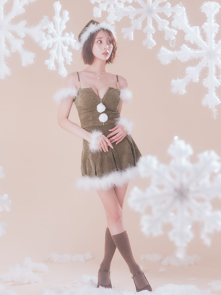 ブラウン グレー クリスマス ビジュー ベロア ドレス ファー付きワンピース キャバドレスクリスマス イベントドレス